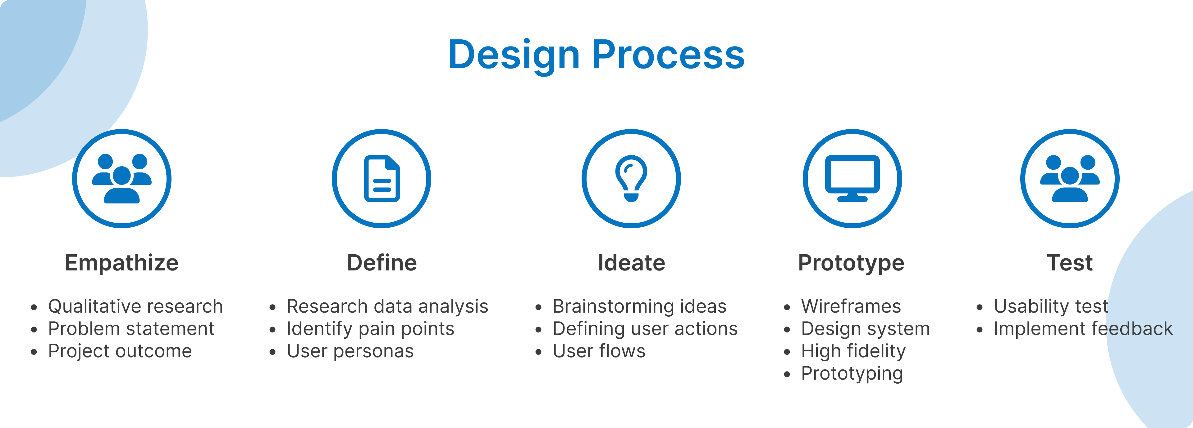 In this project, I applied the design thinking process—a user-centered approach that prioritizes empathy, iteration, and collaboration. This methodology fosters creative problem-solving through prototyping and testing, encouraging cross-disciplinary teamwork. It relies on extensive research to derive actionable insights, promoting adaptability and continuous learning. By reframing challenges and prioritizing user needs, design thinking aims to deliver innovative and user-centric solutions across diverse contexts and industries.