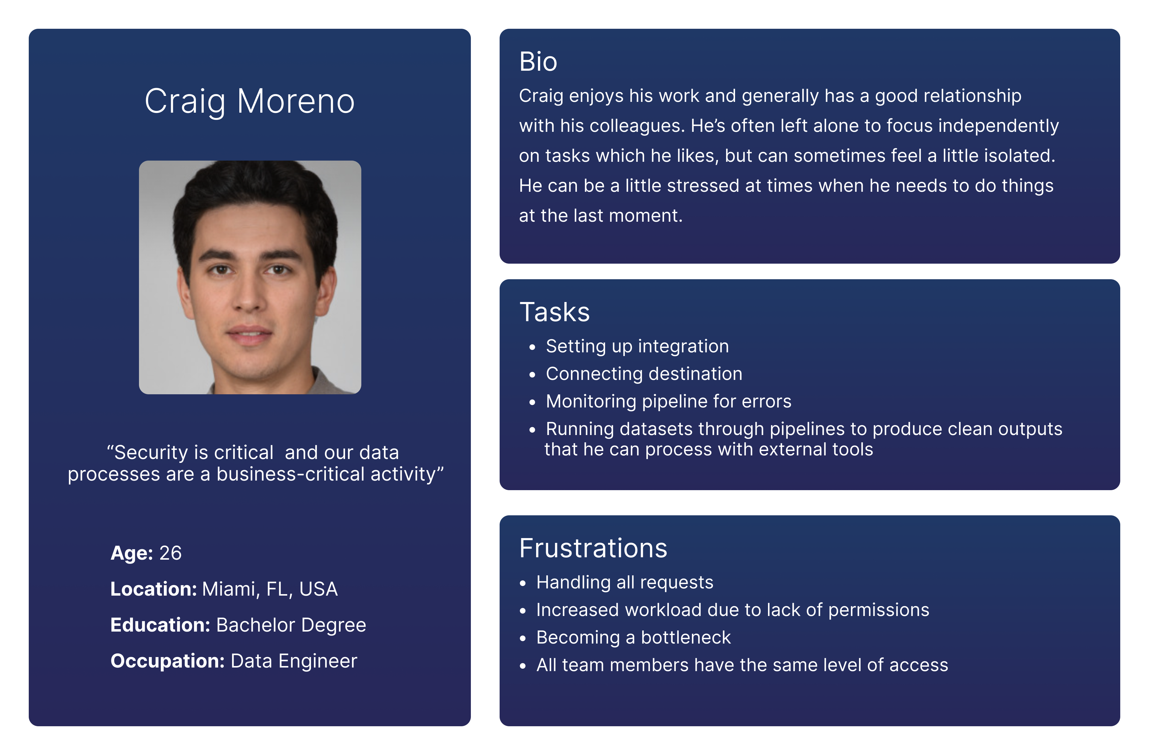 In translating our vision into a tangible reality, user interviews played a pivotal role in shaping the direction of our approach. Through direct engagement with data teams, we gleaned invaluable insights into their pain points, concerns, and aspirations regarding the management of Stitch. The findings from these interviews served to validate our initial hypothesis, affirming the necessity of providing distinct roles for team members within the solution. This approach aims to strike a harmonious balance between user autonomy and stringent security measures.